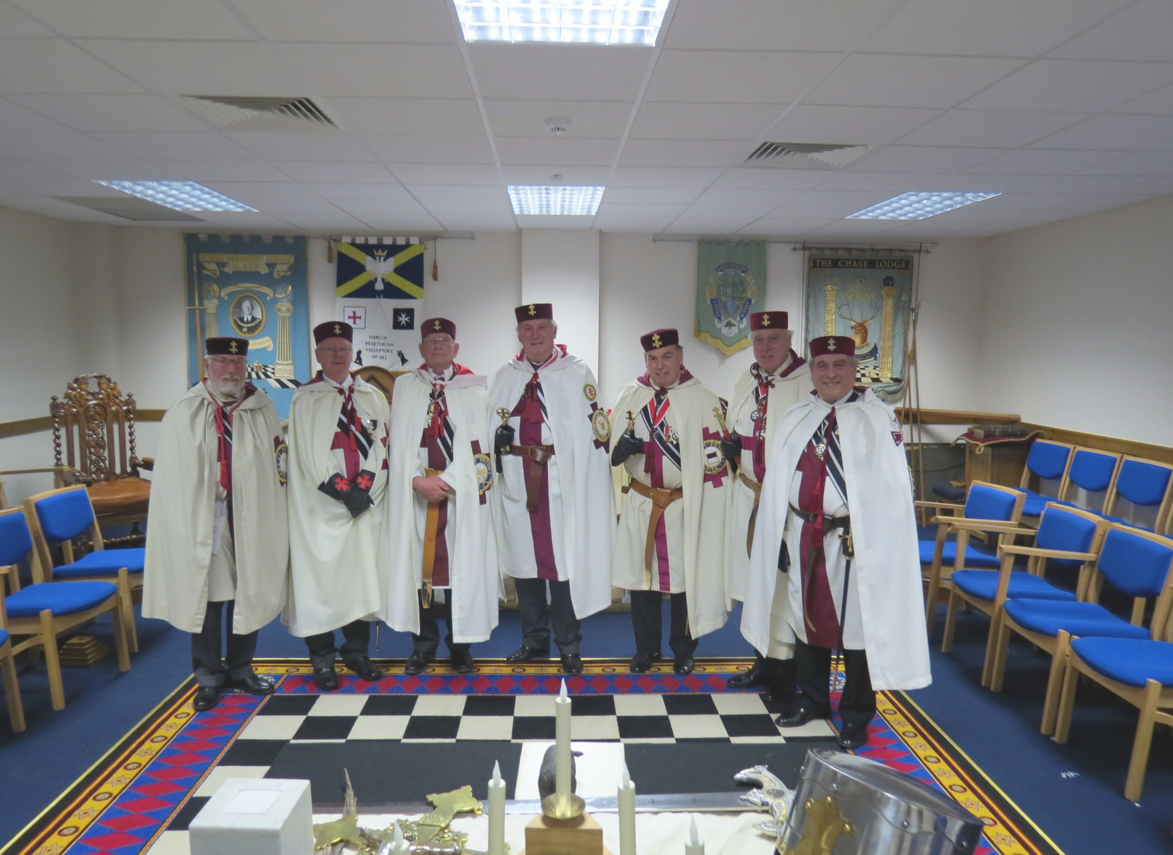 n the 3rd of April the Preceptors of the KEVIIPoI were invited by the Mercia Praetorian Preceptory 682, at Wolverhampton to demonstrate the Knights Templar ritual. We arrived at 3.30pm and was welcomed by the registrar John Francis. The meeting was held at Rugeley Masonic Centre, Chase Golf Club. A superb venue.